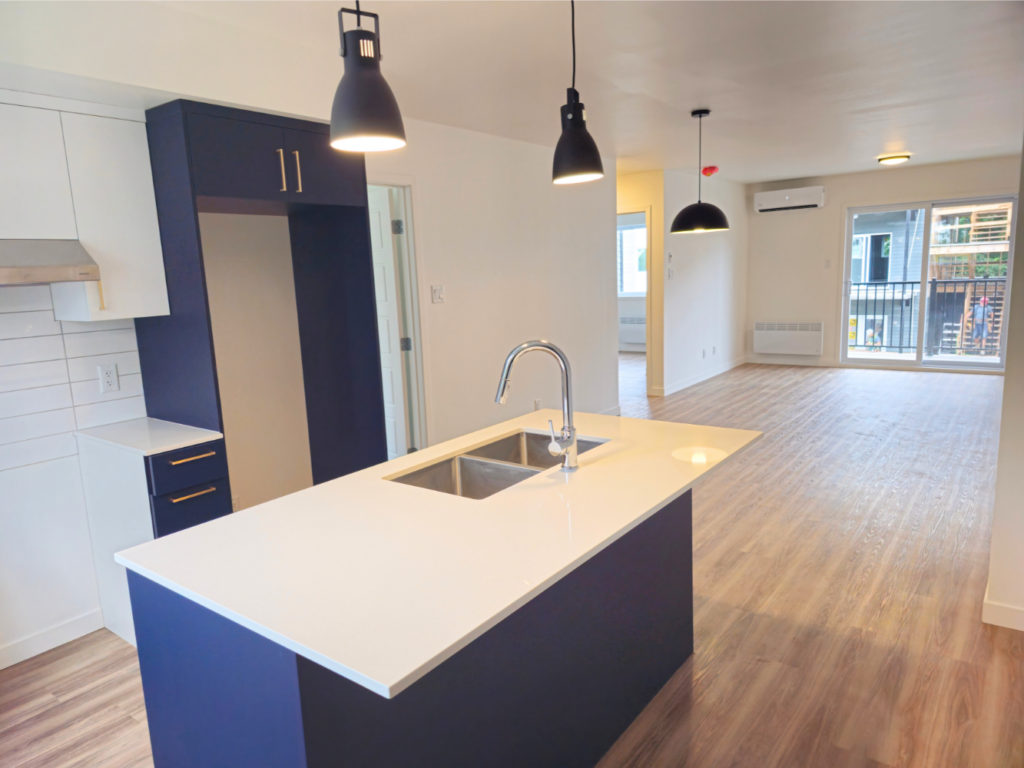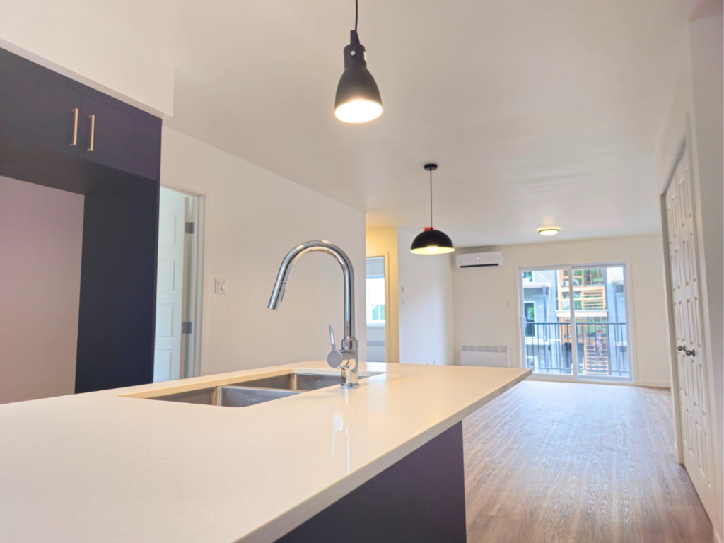 Grand logement luxueux de 4 1/2 de style condo dans une construction neuve près de tous les services publics (autobus, restaurants, épiceries, universités, etc.).
